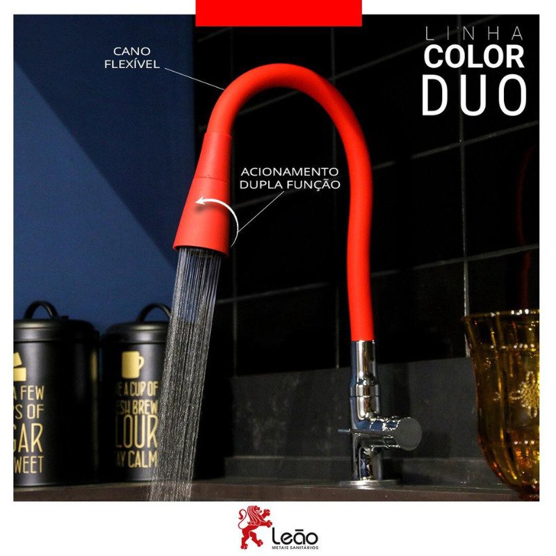 A torneira para cozinha de Mesa – Leão color Dou Vermelha  –  foi pensada para garantir mais liberdade de movimentos, trazendo praticidade e leveza ao ambiente.
